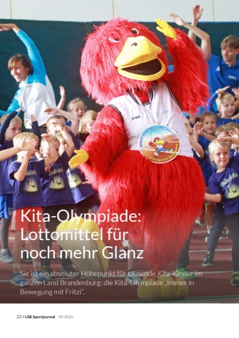 Sportjugend22/LSB Sportjournal09 2025Sie ist ein absoluter H%u00f6hepunkt f%u00fcr tausende Kita-Kinder im ganzen Land Brandenburg: die Kita-Olympiade %u201eImmer in Bewegung mit Fritzi%u201c. Lottomittel f%u00fcr noch mehr Glanz