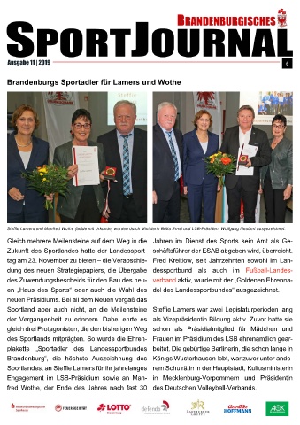 plakette „Sportadler des Landessportbundes beitet. Die gebürtige Berlinerin, die schon lange in