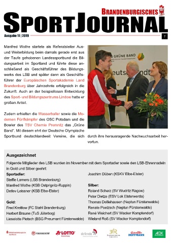 Folgende Mitglieder des LSB wurden im November mit dem Sportadler sowie den LSB-Ehrennadeln