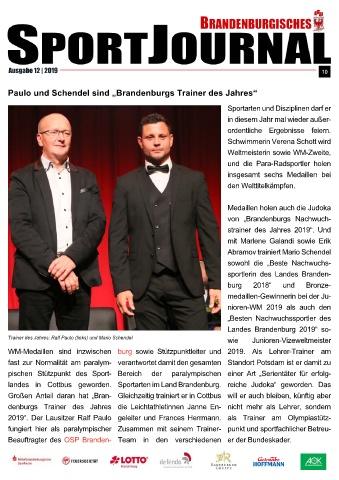 Paulo und Schendel sind „Brandenburgs Trainer des Jahres“