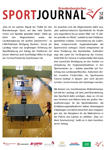 Brandenburger Sport, auf das viele Sportle- „den außerschulischen Sportbetrieb für Kinder
