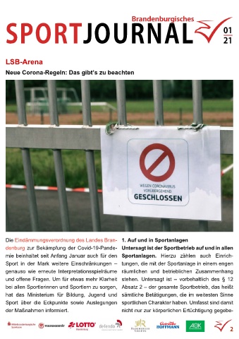 Die Eindämmungsverordnung des Landes Bran- 1. Auf und in Sportanlagen