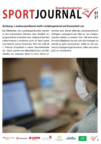 Achtung: Landessportbund stellt vorübergehend auf Kurzarbeit um
